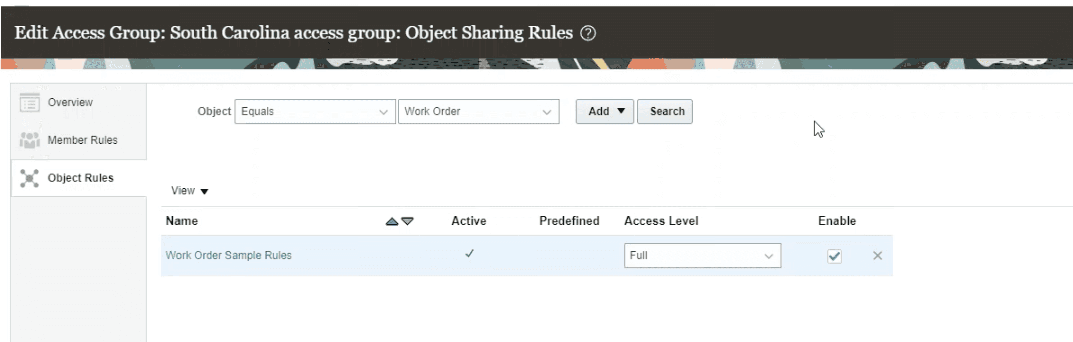 Upon creating an object rule we can create an access group. The image below demonstrates a newly created access group.