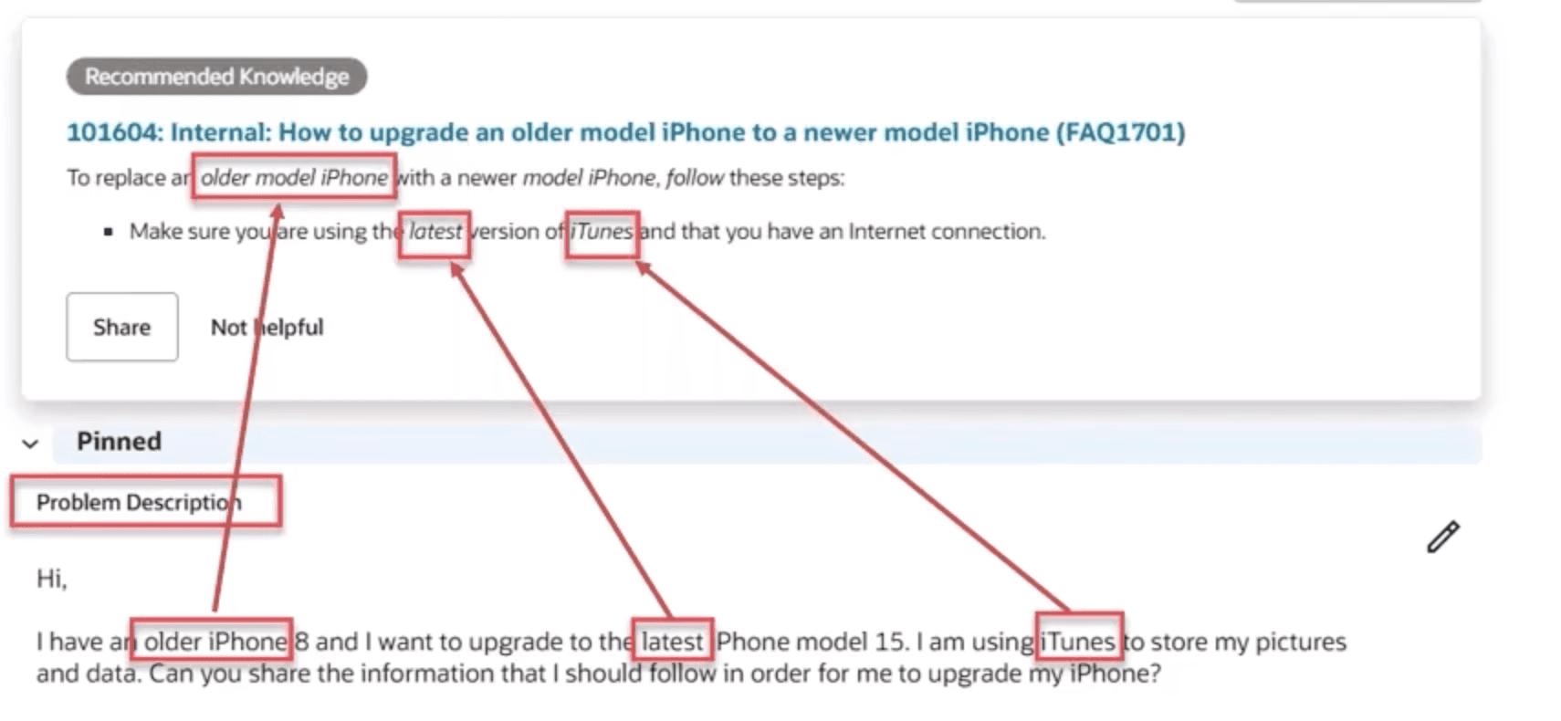This is by far of one of my favorite improvements from this release! In the past clients have had to ensure that their service request title's were clear, searchable and precise as that was the key driver for searching a knowledge article deriving from an SR. However, with this new update users will now be able to search from the service request description. This will allow users to get more results especially for those articles with a poor title. This feature is automatically enabled in 25A. Below is an image displaying the values being pulled from the problem description onto the knowledge article.